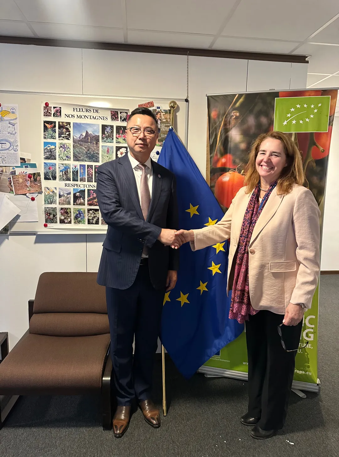 During the period, Pan Feng led the delegation to have exchanges with Catherine Combette, Head of Asia-Pacific Region, Directorate General for Agriculture of EU, and Georges-Henry CARRARD, Policy Officer, on the 5th China International Consumer Goods Expo, the 4th China-foreign Geographical Indication Products Expo, and 2025 China-EU Geographical Indication Products Promotion Activities.
